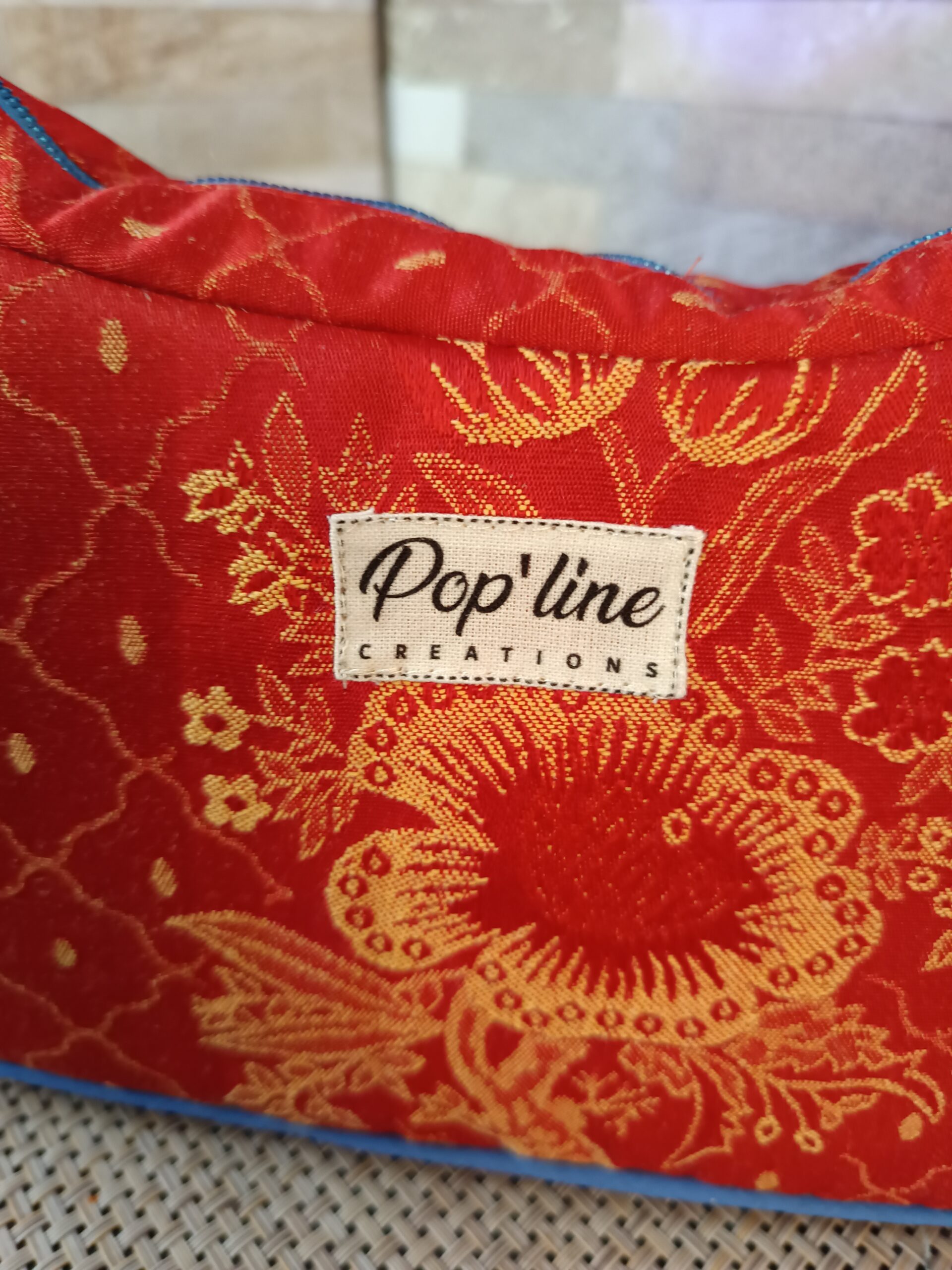 Petit sac de ville très structuré qui a une bonne tenue grâce à ses renforts. Il est bordé d’un passepoil assorti qui lui donne son chic, finition  couture. Il est entièrement doublé en jeans fin et comporte une poche plaquée sur un côté intérieur. Confectionné en tissu fantaisie, il est lavable en machine.